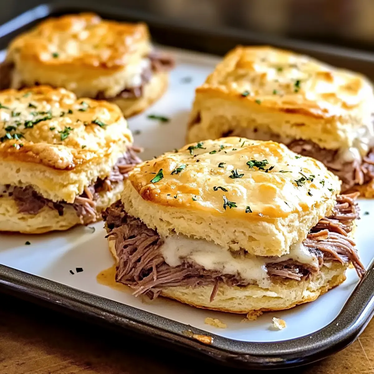 The enticing aroma of freshly baked biscuits drifting through the kitchen is like a warm hug on a chilly evening. This Baked French Dip Biscuits Recipe harnesses that warmth, transforming simple ingredients into comforting bites of heaven. Perfect for busy weeknights or casual gatherings, these easy-to-make biscuits deliver a delightful combination of hearty roast beef and gooey cheese, all nestled in flaky dough. With just a few steps, you can serve up a dish that feels gourmet but doesn’t require hours in the kitchen. Plus, they’re easily customizable—feel free to swap out the meat or cheese for your favorites! Ready to elevate your weeknight dinner routine? Let’s dive into this delicious comfort food adventure!