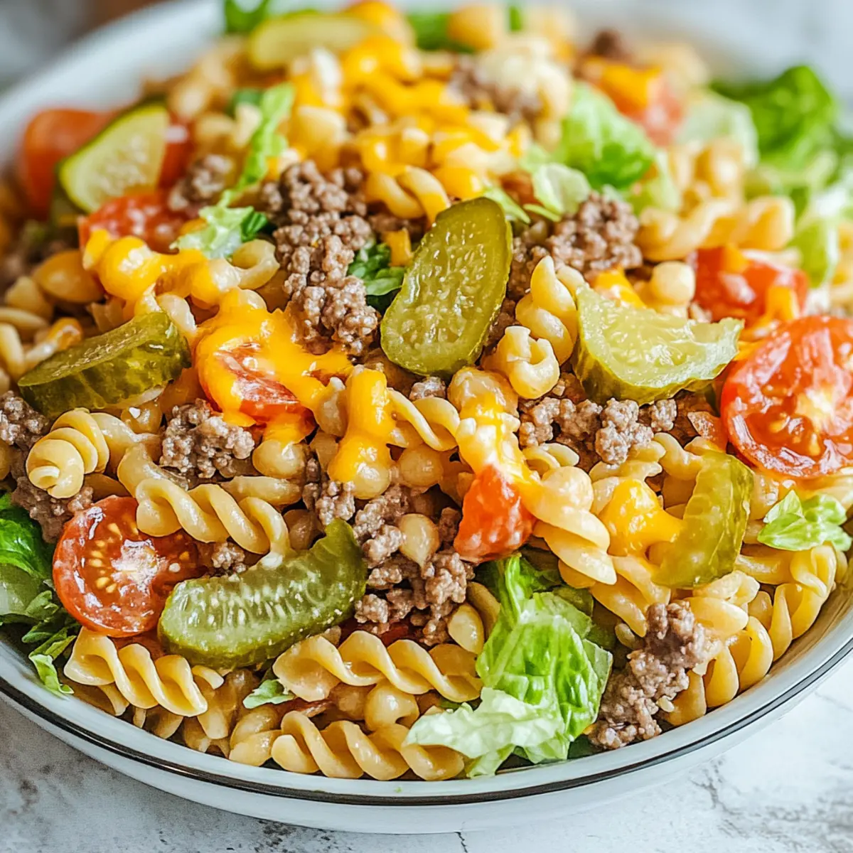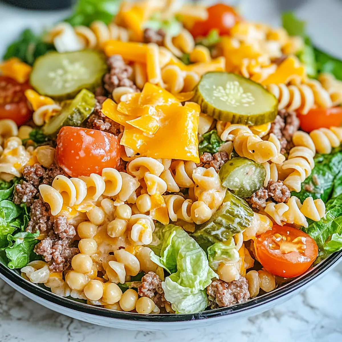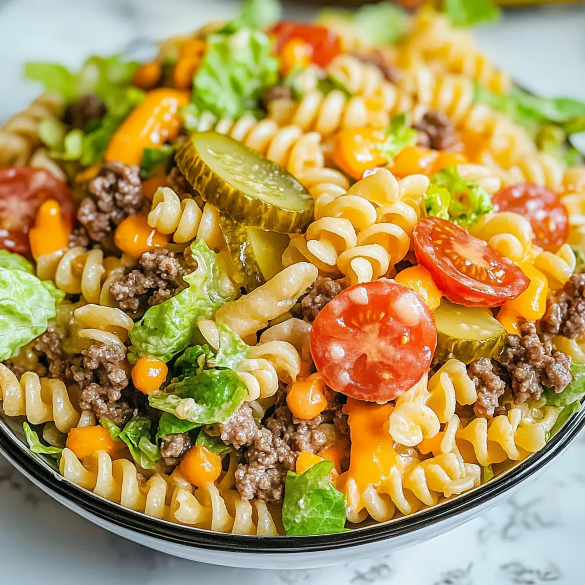 Chill the Dressing: Make the dressing in advance and let it chill in the refrigerator. This enhances the flavors, making your Big Mac Pasta Salad even more delicious!