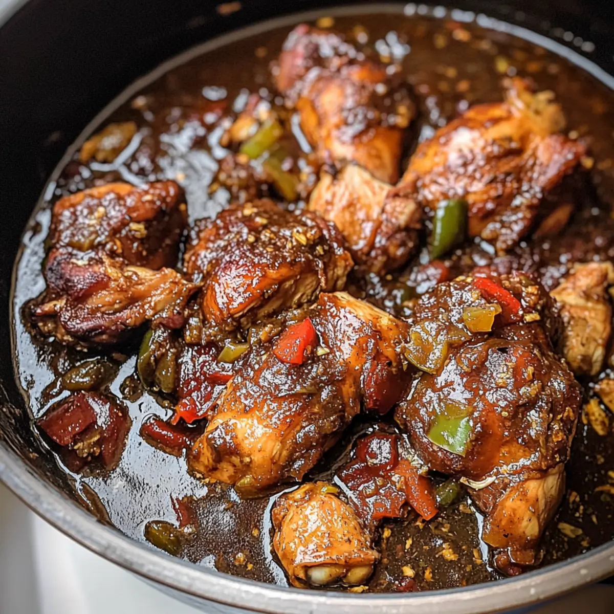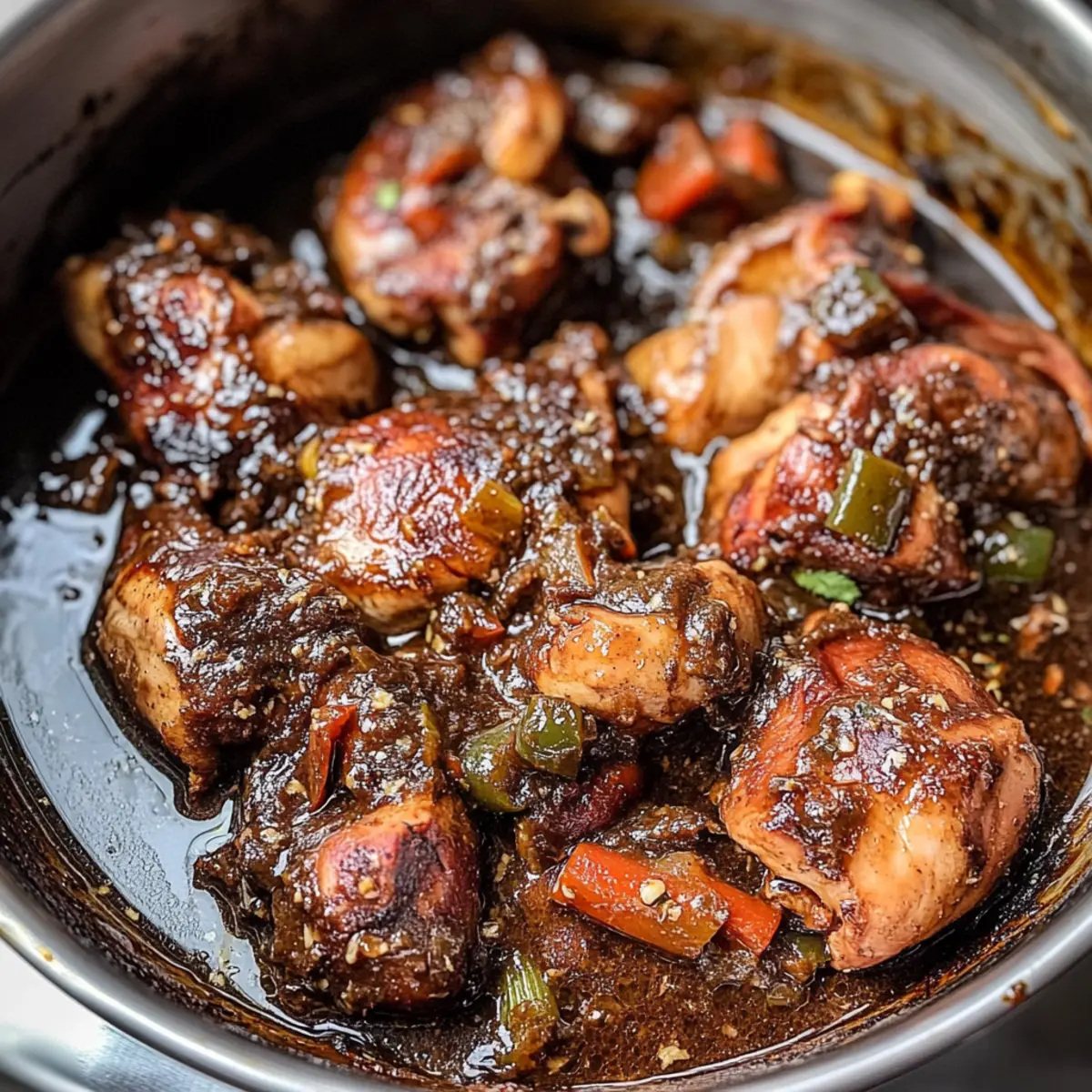 Of course! Jamaican Brown Stew Chicken contains common allergens like chicken and potentially soy if you opt to include soy sauce. Always check for any personal food allergies or dietary restrictions. For pet-friendly alternatives, ensure no spiced portions are given to furry friends, especially if any hot ingredients like the scotch bonnet were used.