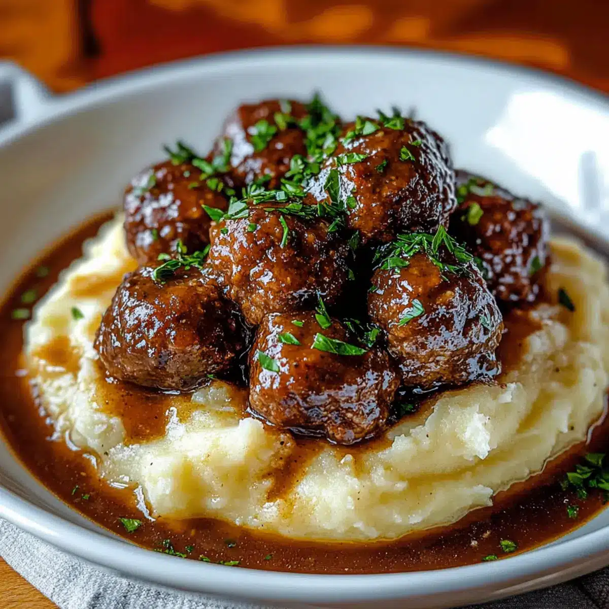 Salisbury Steak Meatballs with Garlic Herb Mashed Potatoes Bliss