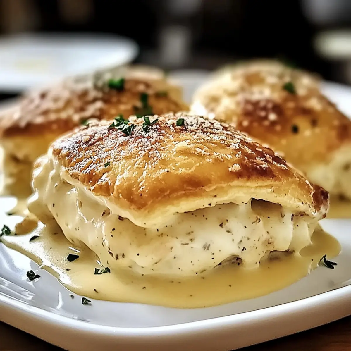 Unleash the comfort with these Chicken Pillows with Creamy Parmesan Sauce, a dish that’s bound to become a cherished favorite in your home!