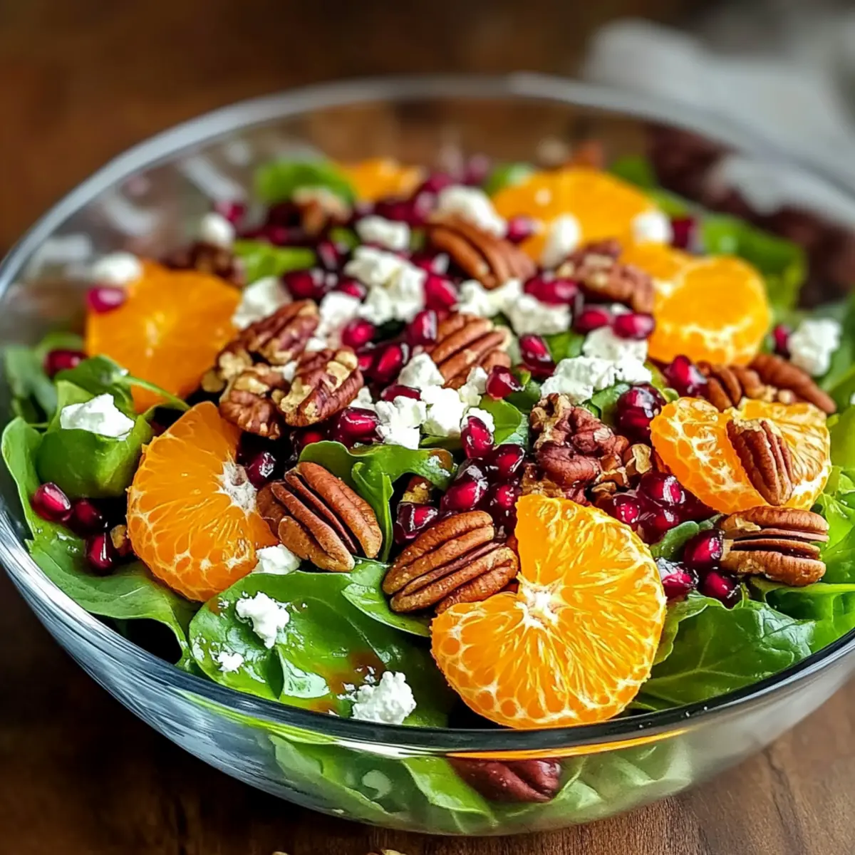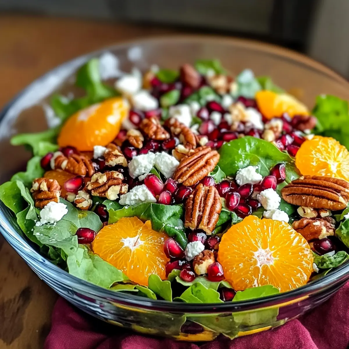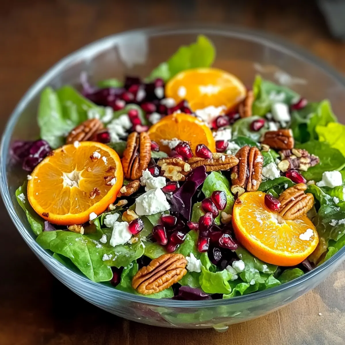 Vibrancy: This Christmas Salad is a feast for the eyes and taste buds, with its colorful array of greens, oranges, and pomegranates.
