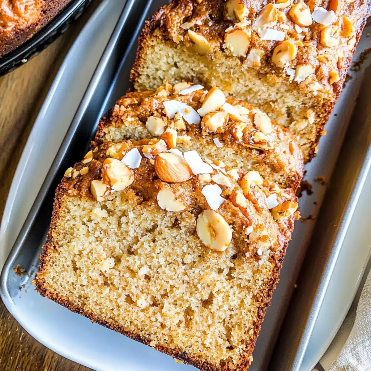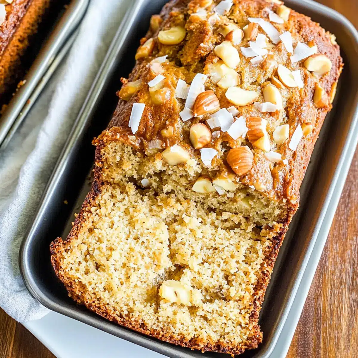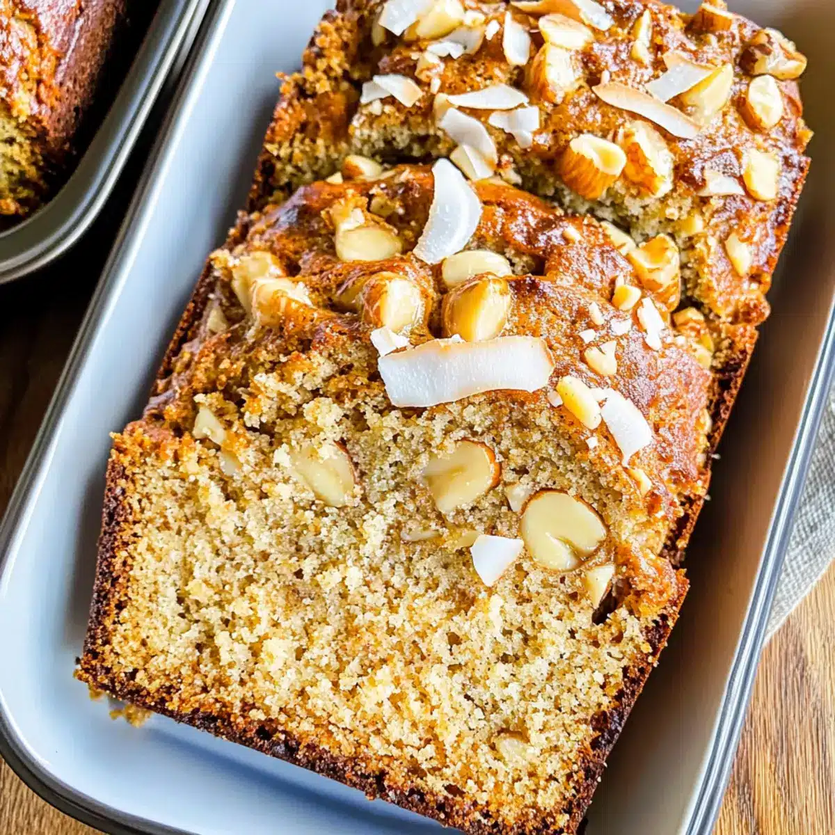 Tropical Twist: This isn’t your average banana bread! The addition of flaked coconut and macadamia nuts brings a tropical vibe, making each bite a delight.
