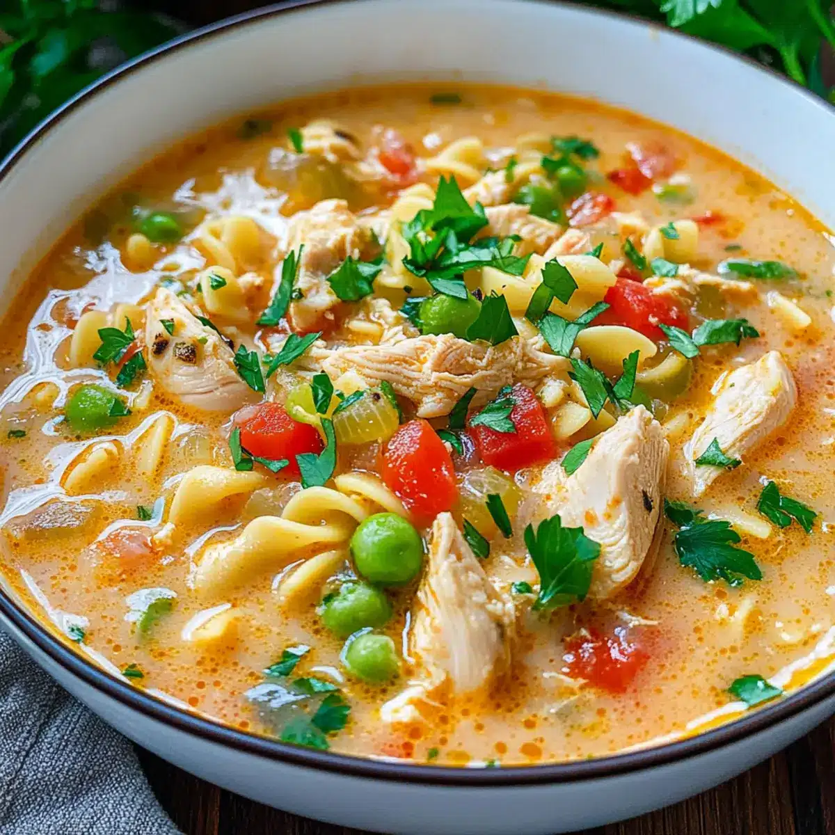 Comforting Creamy Parmesan Cajun Chicken Pasta Soup Delight