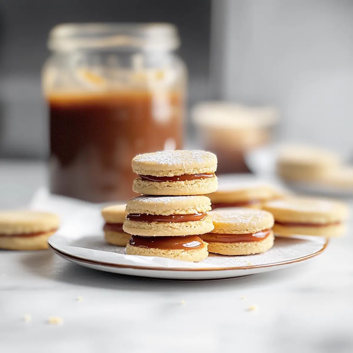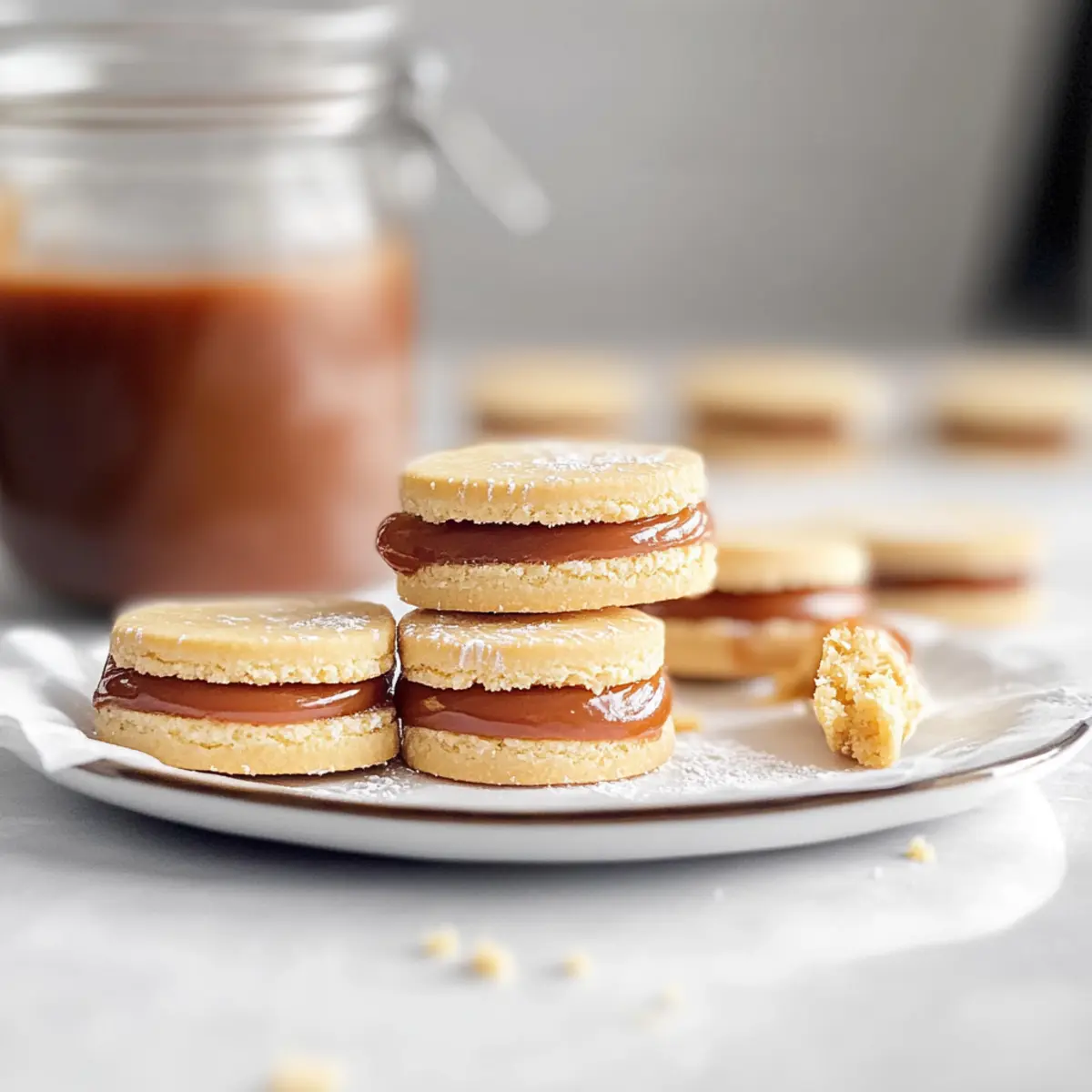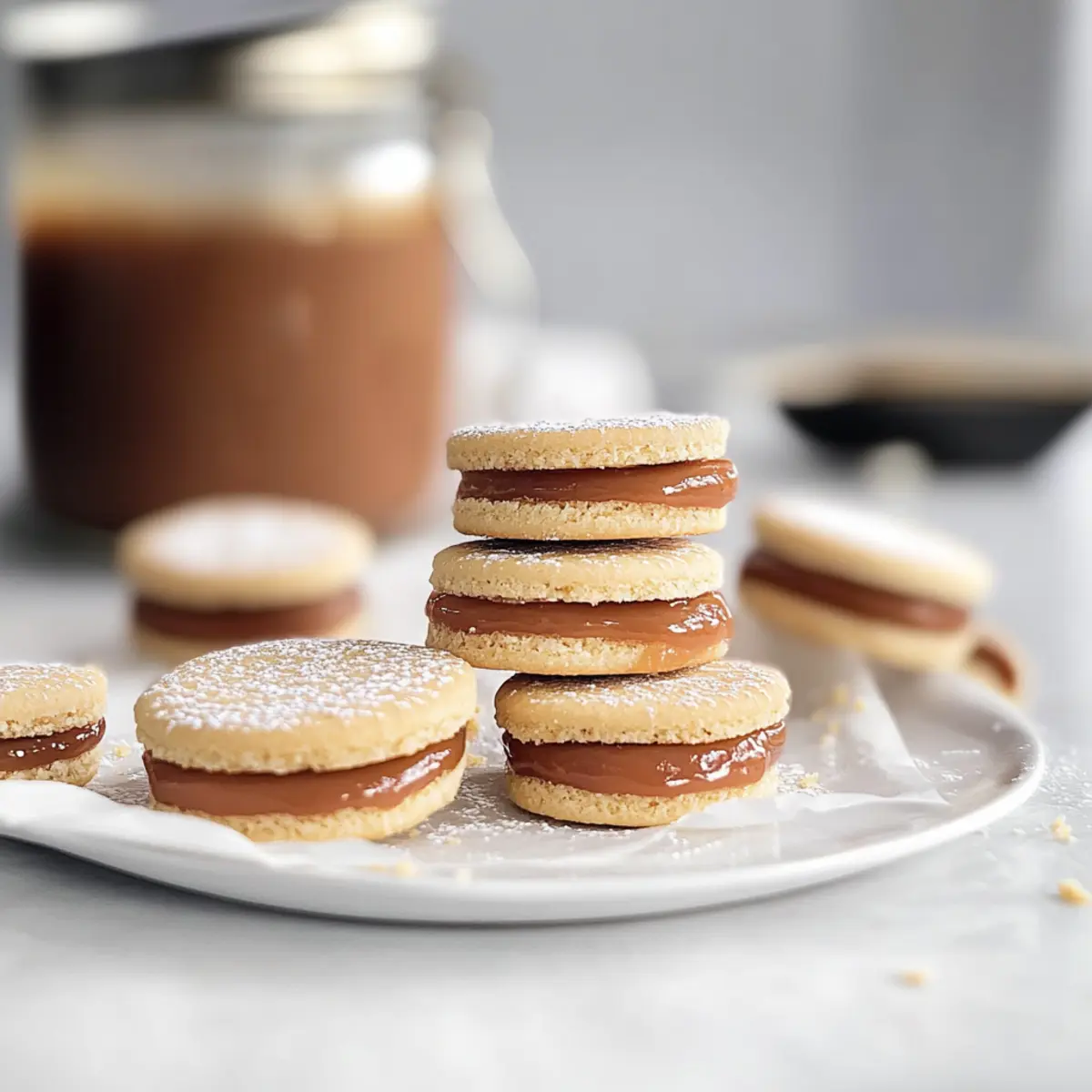 Serving Suggestions: Enjoy these dulce de leche sandwich cookies with coffee or hot chocolate for a delightful pairing that enhances the sweet flavors.
