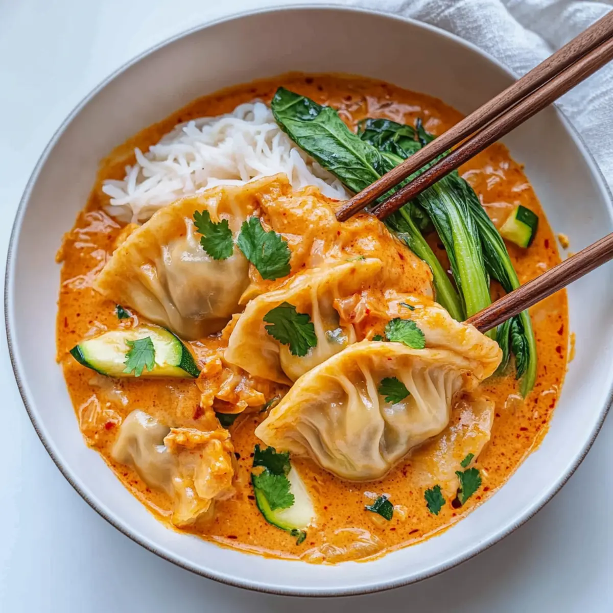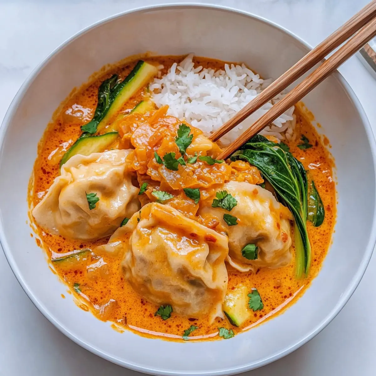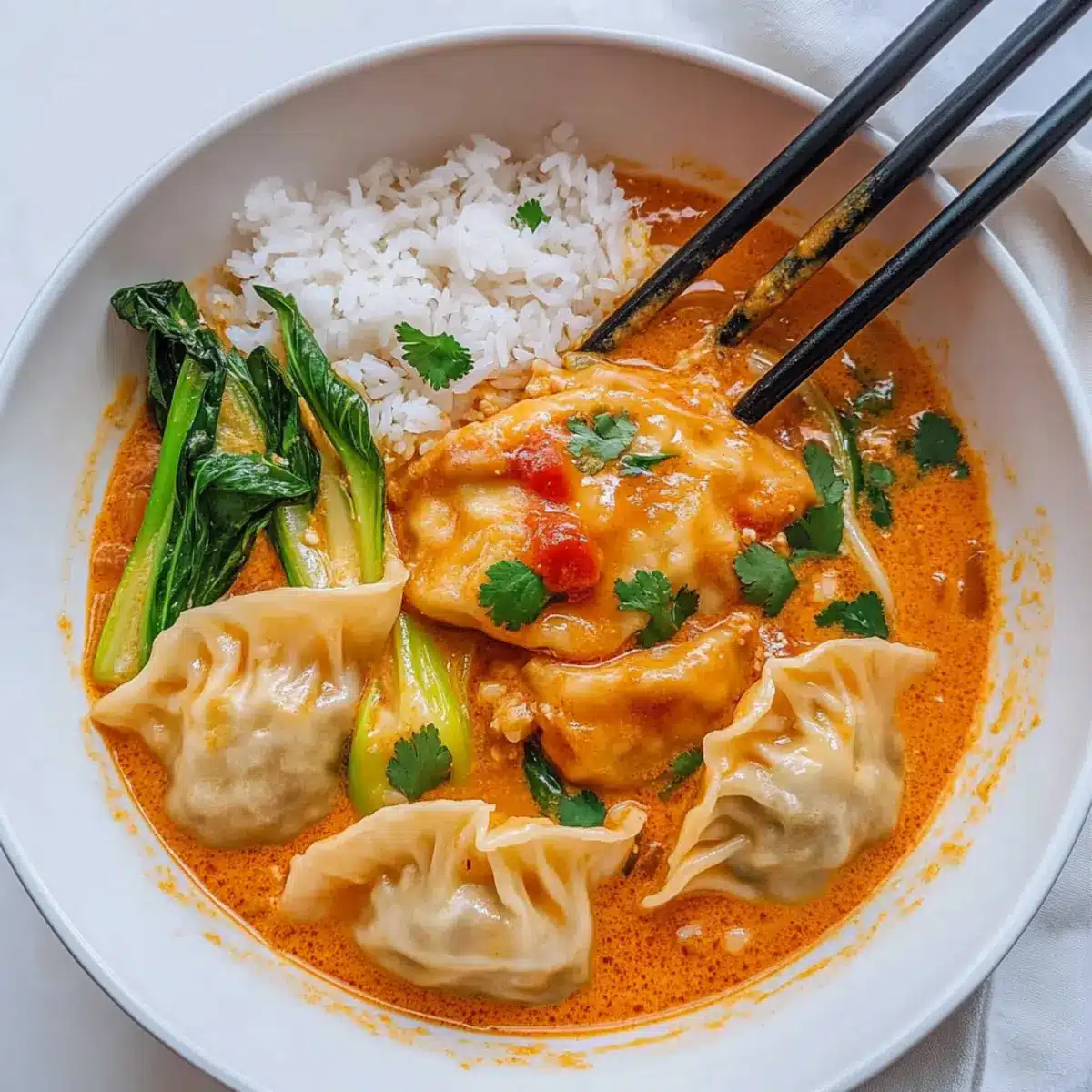Simplicity is key with this dish, thanks to the ‘dump and bake’ method that anyone can master. Nutritious and packed with fresh vegetables like bok choy and zucchini, it provides a healthy dinner option the whole family will love. Flavor explosion: the creamy Thai red curry broth infuses each dumpling with aromatic goodness. Versatility allows you to switch up dumplings and veggies, making it a perfect go-to for whatever you have on hand. And with minimal cleanup required, you can focus on what really matters—enjoying your meal! For more delicious inspiration, check out this easy Baked Potato Soup that’s equally comforting!