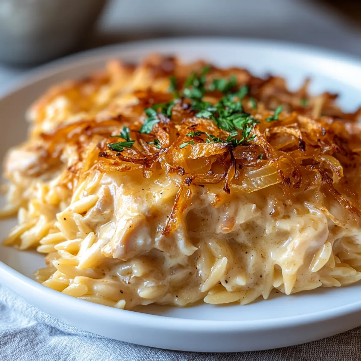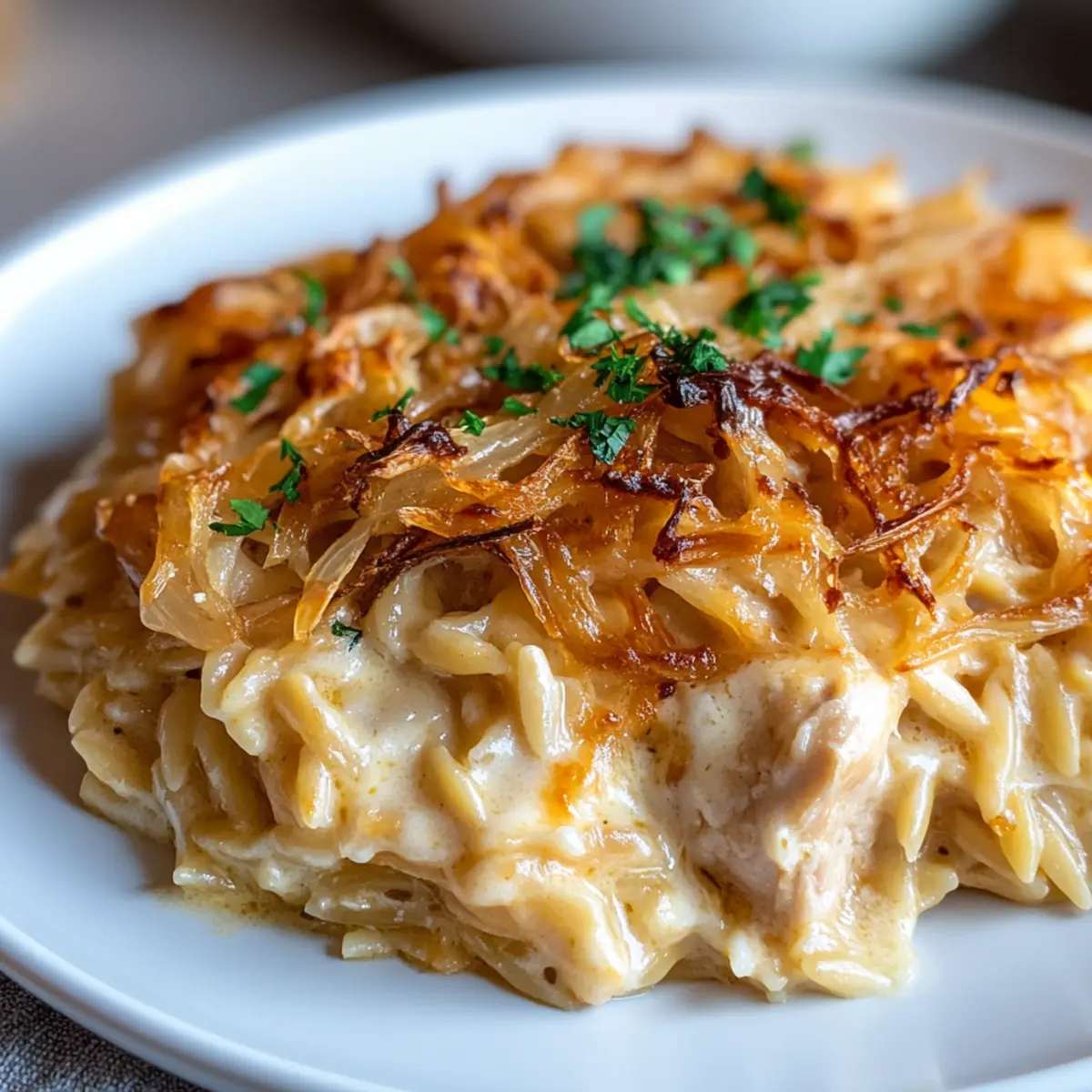 Savory French Onion Chicken Orzo Casserole for Cozy Nights