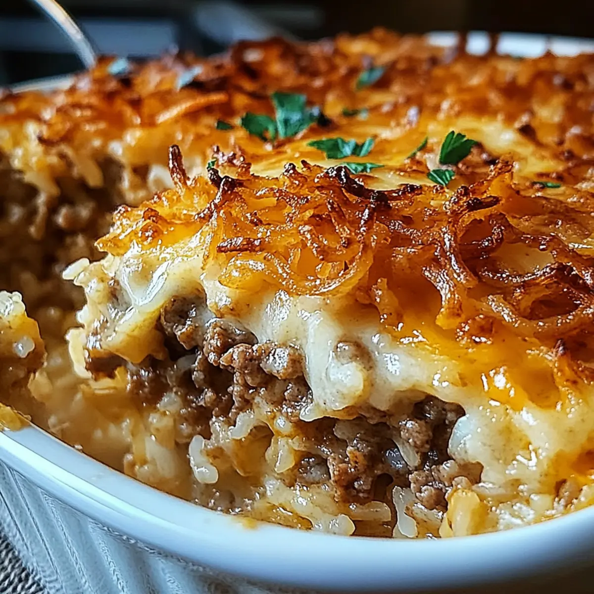Cozy French Onion Ground Beef and Rice Casserole Recipe