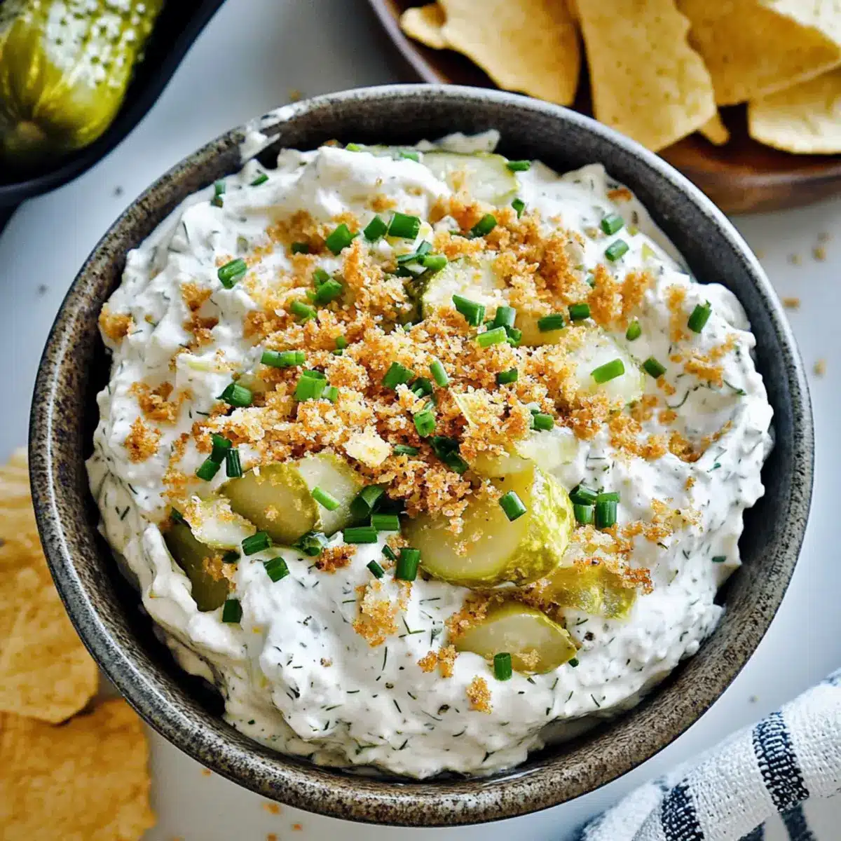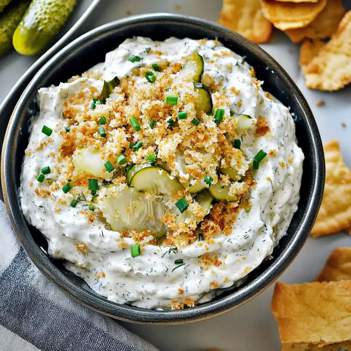 Preparing this Fried Pickle Ranch Dip is a fantastic way to save time, especially on busy weeknights or during party planning. You can easily mix the dip ingredients up to 24 hours in advance, allowing the flavors to meld beautifully in the refrigerator (be sure to cover it tightly for maximum freshness). For optimal quality, reserve some toasted panko and garnishes (like fresh dill and chives) until just before serving to maintain that delightful crunch. When you’re ready to impress your guests, simply pull the cooled dip from the fridge, garnish, and serve with your favorite dippers for an effortless yet delicious appetizer!