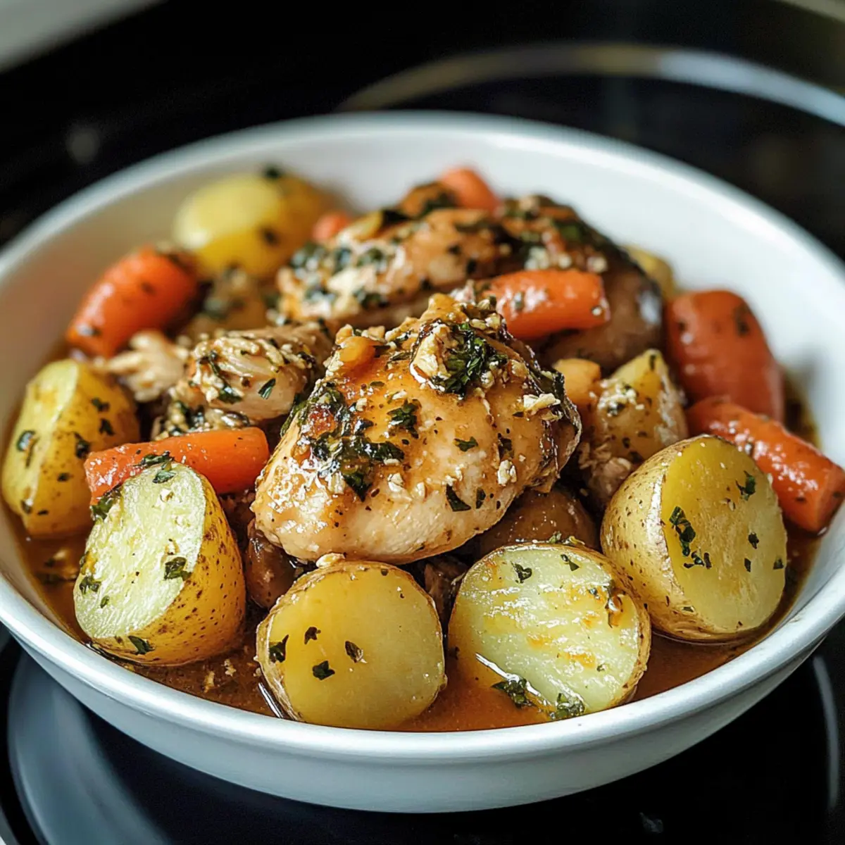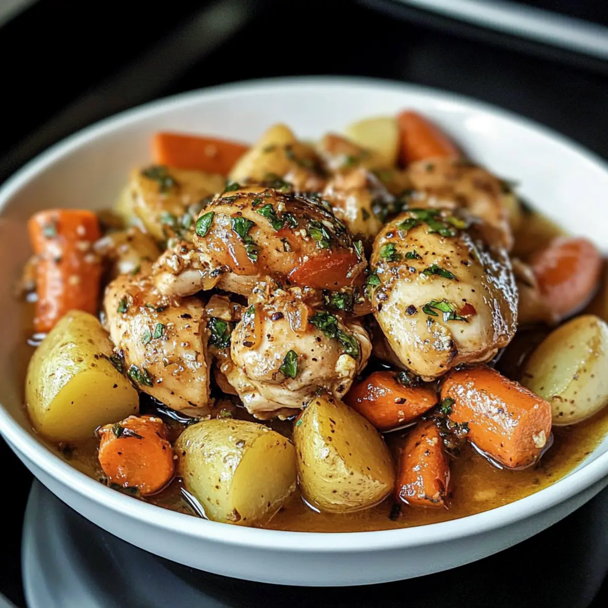 Comfort in Every Bite: Tender chicken, creamy potatoes, and sweet carrots create a warm, hearty meal that soothes the soul after a long day.
