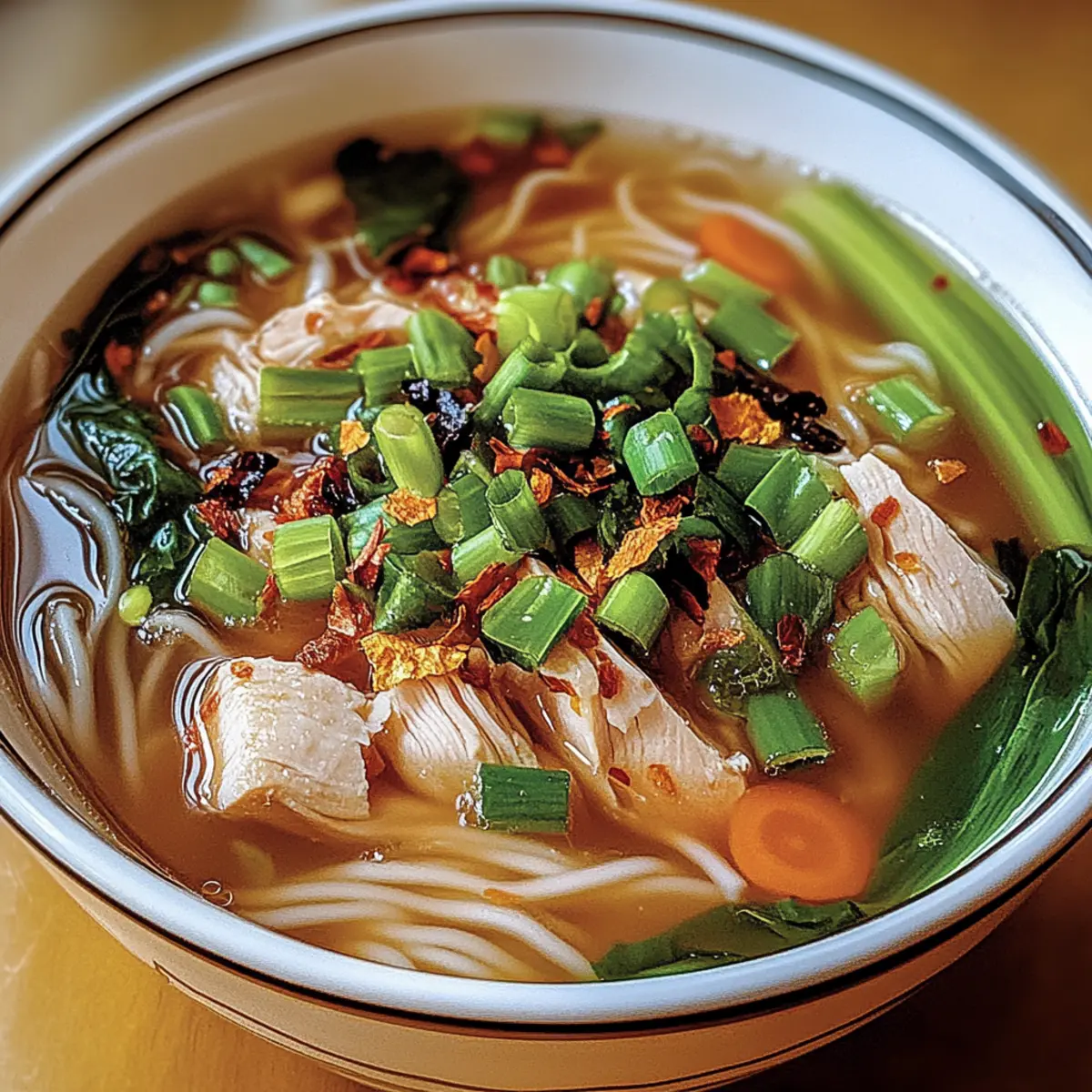 In the last few minutes of cooking, toss in chopped bok choy or spinach, stirring gently until the greens are wilted and vibrant. This step not only adds a pop of color to your Ginger Garlic Chicken Noodle Soup but also boosts its nutritional content.