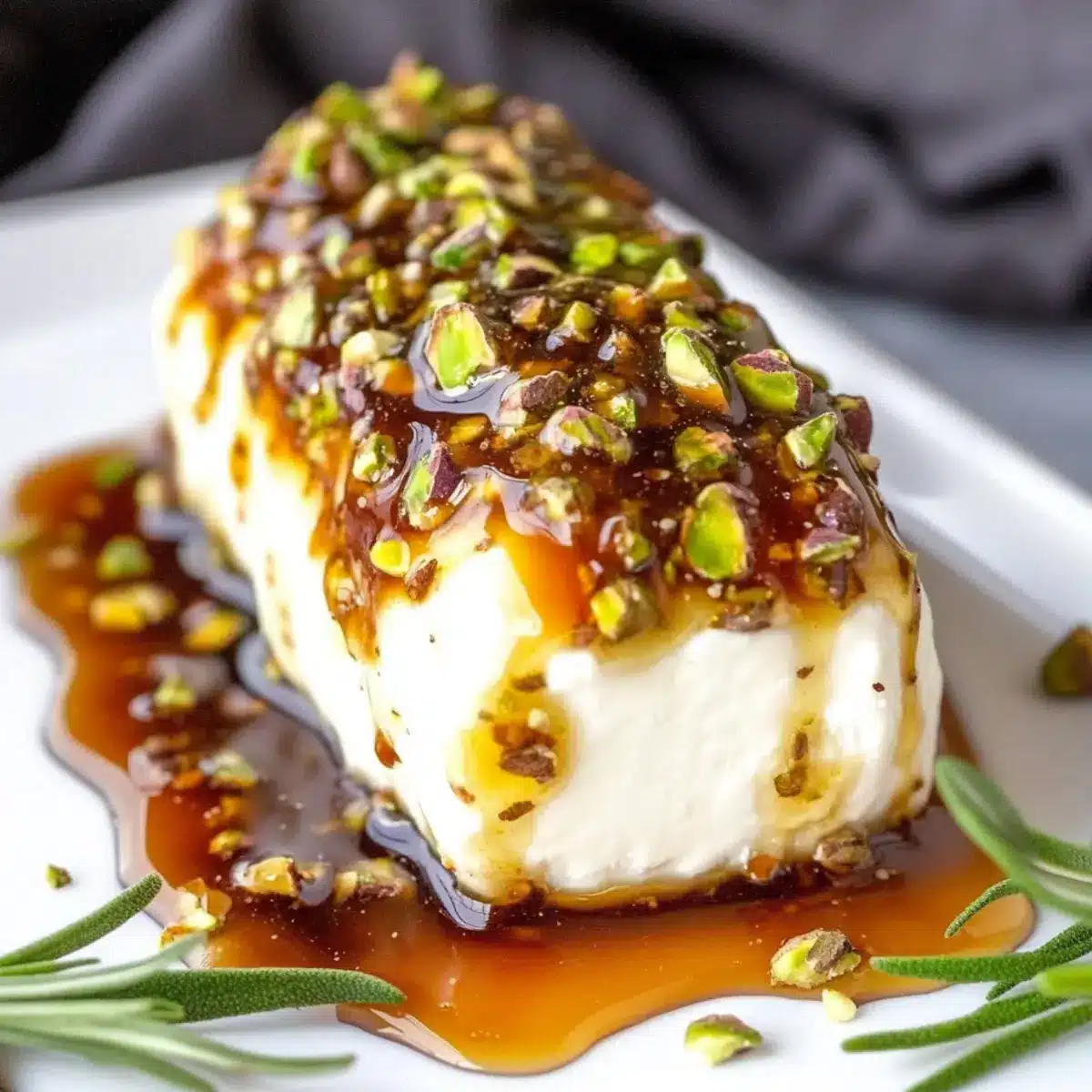 Reheating Tips: Serve the appetizer cold directly from the fridge. If it’s been in the freezer, allow it to thaw completely, then coat it with pistachios before drizzling with honey and fig spread.