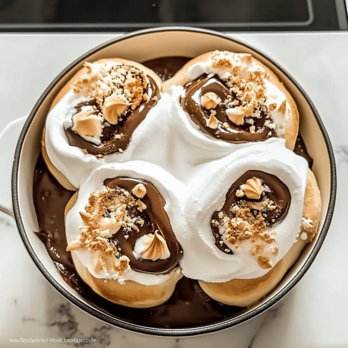 Caramel Drizzle: Before adding the meringue, drizzle warm caramel sauce over the baked rolls for an indulgent layer of sweetness. It enhances the gooey goodness and makes a beautiful presentation.