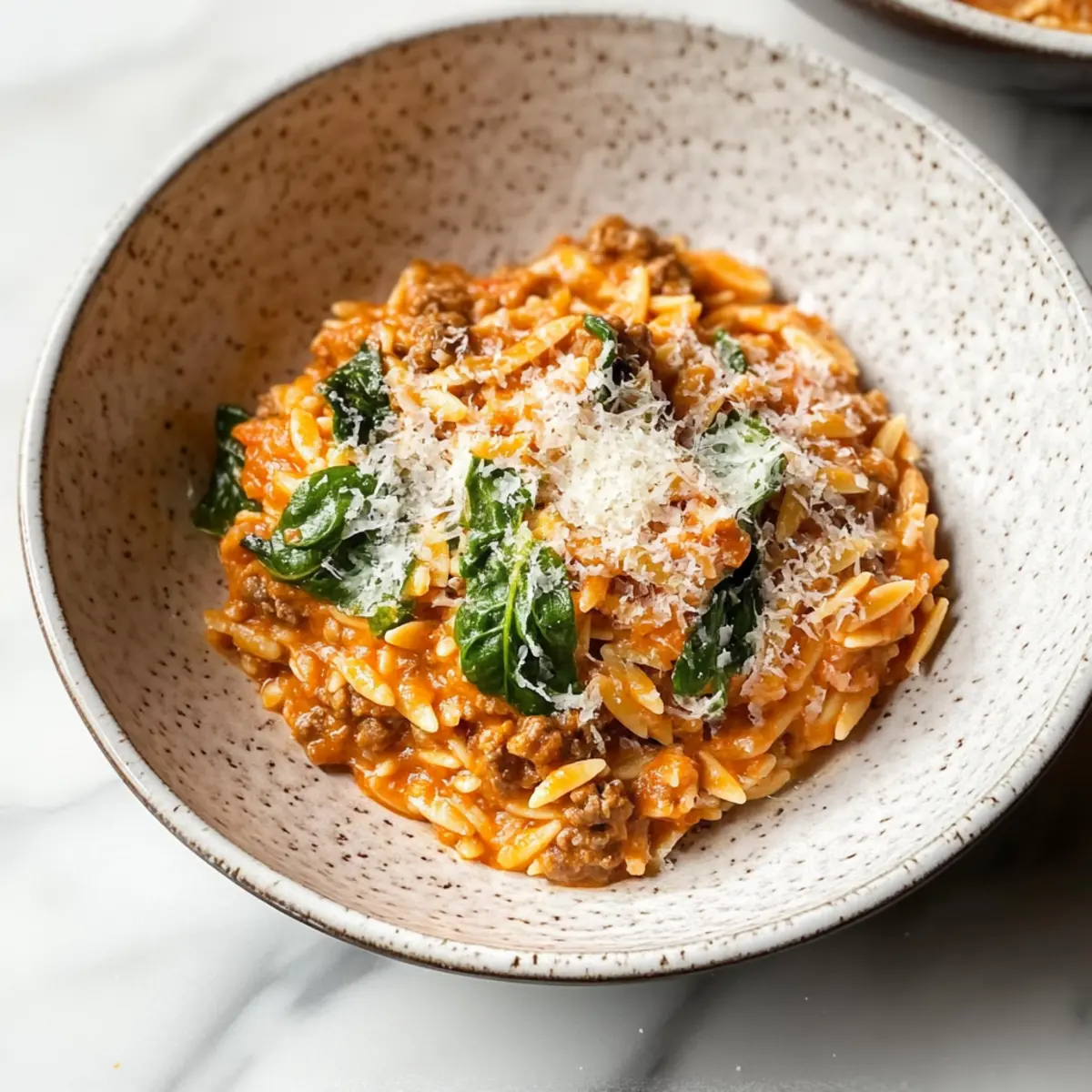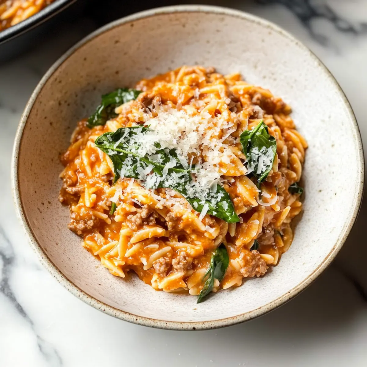 Comfort in Every Bite: The creamy tomato sauce envelops the orzo and beef, delivering a rich and satisfying flavor that feels like a warm embrace.