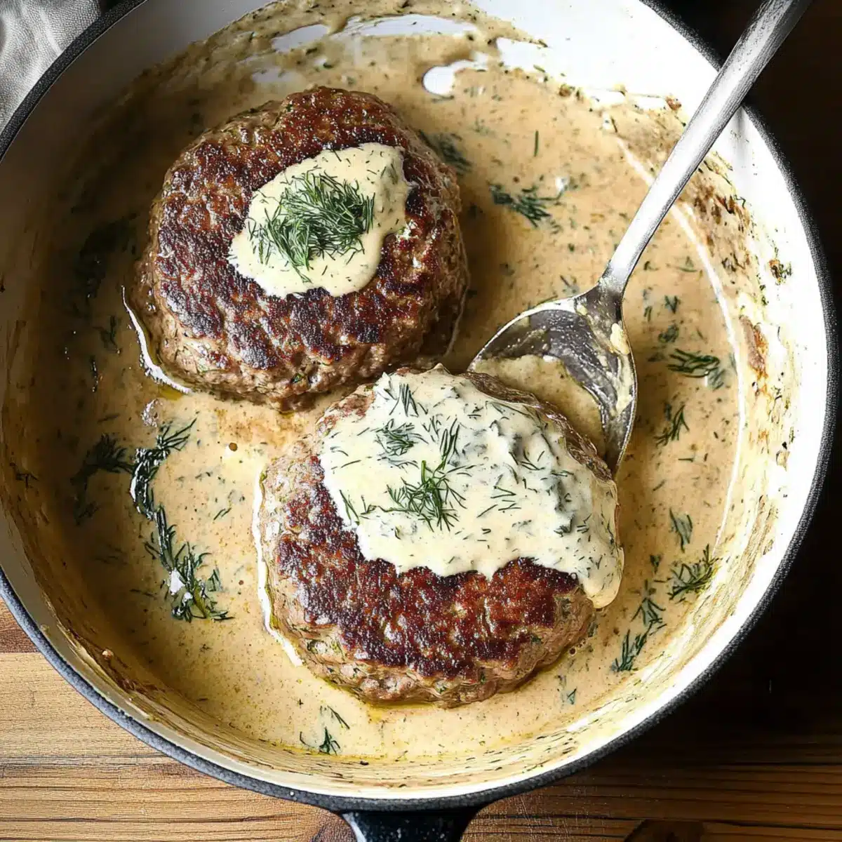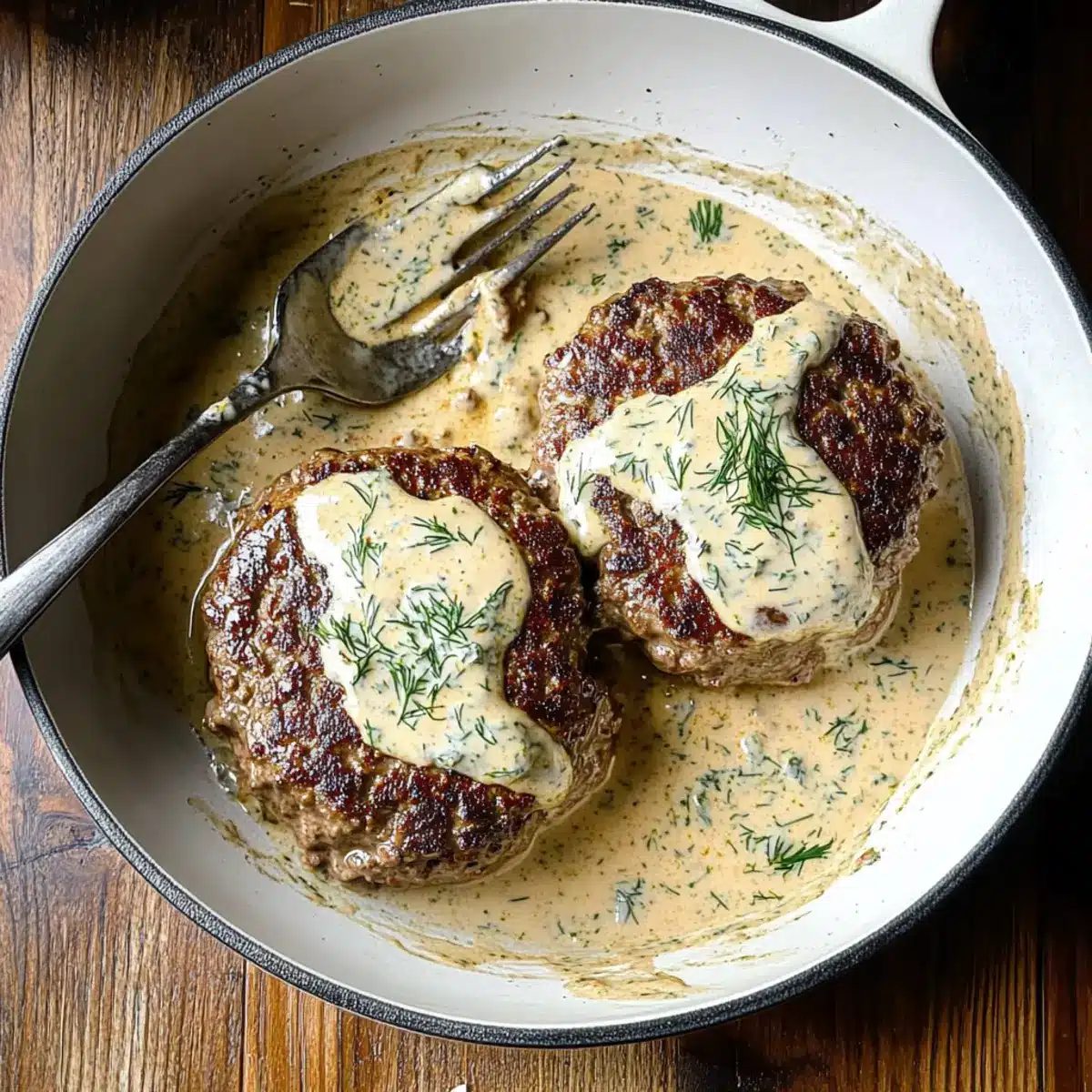 Savory Hamburger Steaks in Creamy Dill Sauce for Comfort Meal