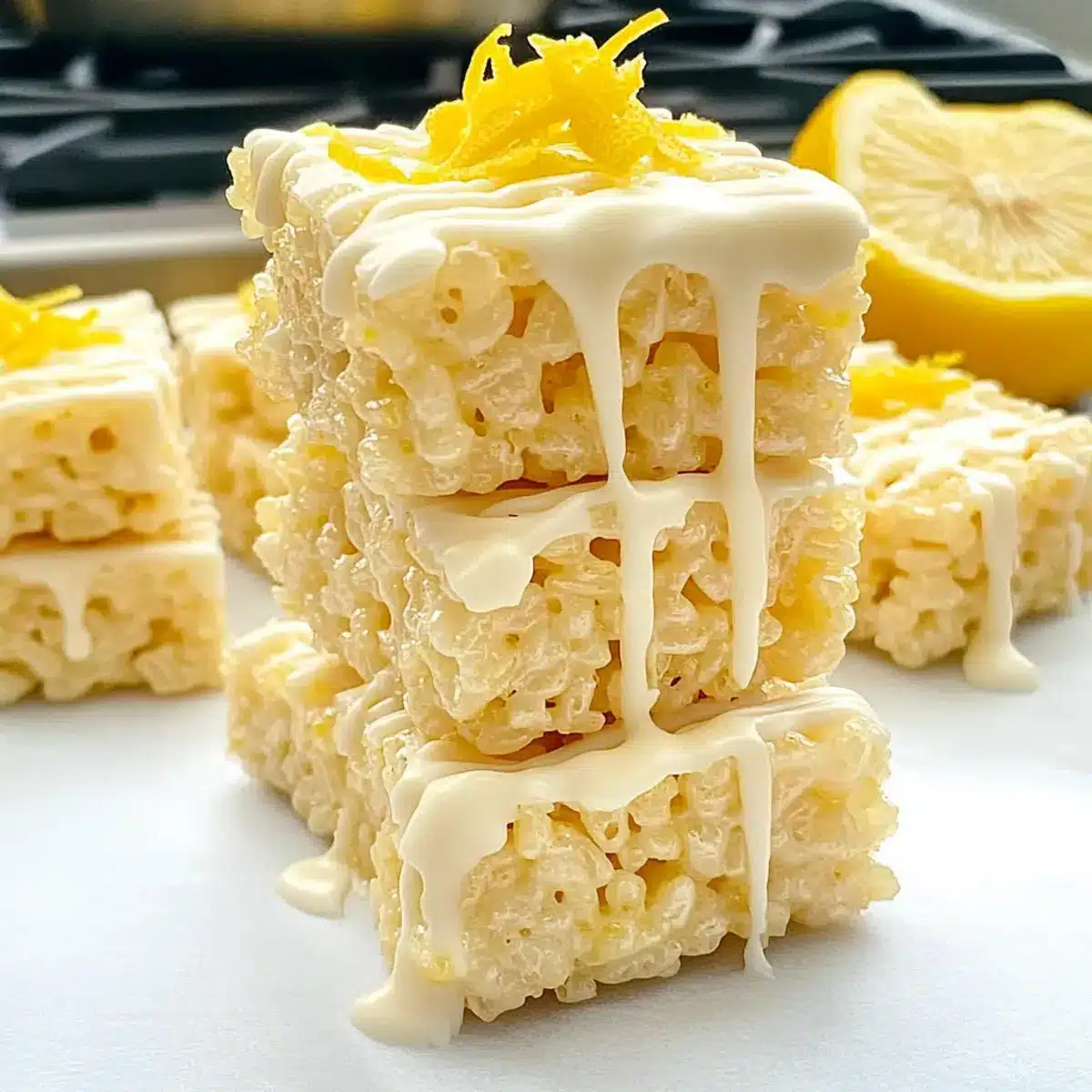 Bright, zesty flavor: The refreshing lemon twist transforms classic Rice Krispy Treats into a vibrant and cheerful dessert.