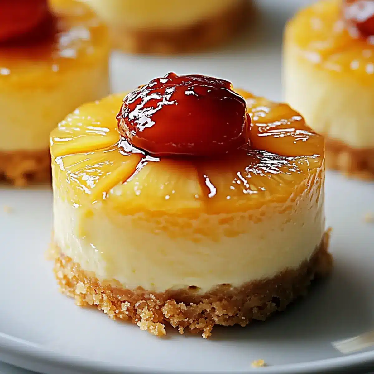 Indulge in a tropical twist: These Mini Pineapple Upside-Down Cheesecakes offer the delightful combination of creamy and fruity in each bite. Versatile and customizable: Feel free to swap out the pineapple for your favorite fruits, like mango or berries, for a unique twist. Easy to make: With minimal ingredients and simple steps, even beginner cooks can impress their guests. Perfectly portioned: These bite-sized treats are ideal for gatherings, ensuring everyone can enjoy their own little piece of paradise. Serve them alongside a cup of coffee or a scoop of ice cream for an unforgettable dessert experience! If you enjoy portable treats, check out my Mini Cheesecake Cups for more delicious options!