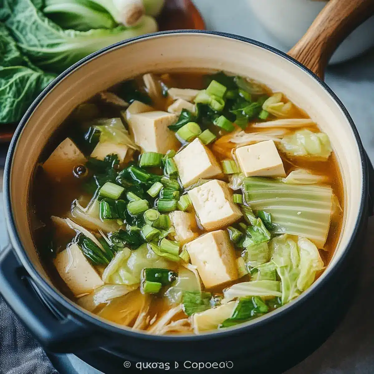 - Experiment with Variations: Feel free to add seasonal vegetables or swap in different types of tofu to make the Napa Cabbage Tofu Soup your own!