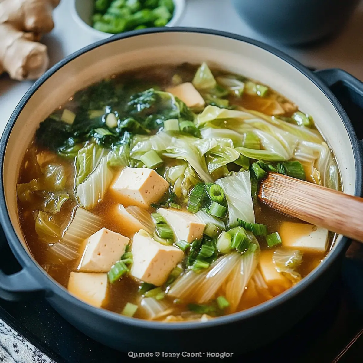 - Ladle the soup into warm bowls, including a mix of the napa cabbage, tofu, and broth in each serving. Enjoy your comforting soup.