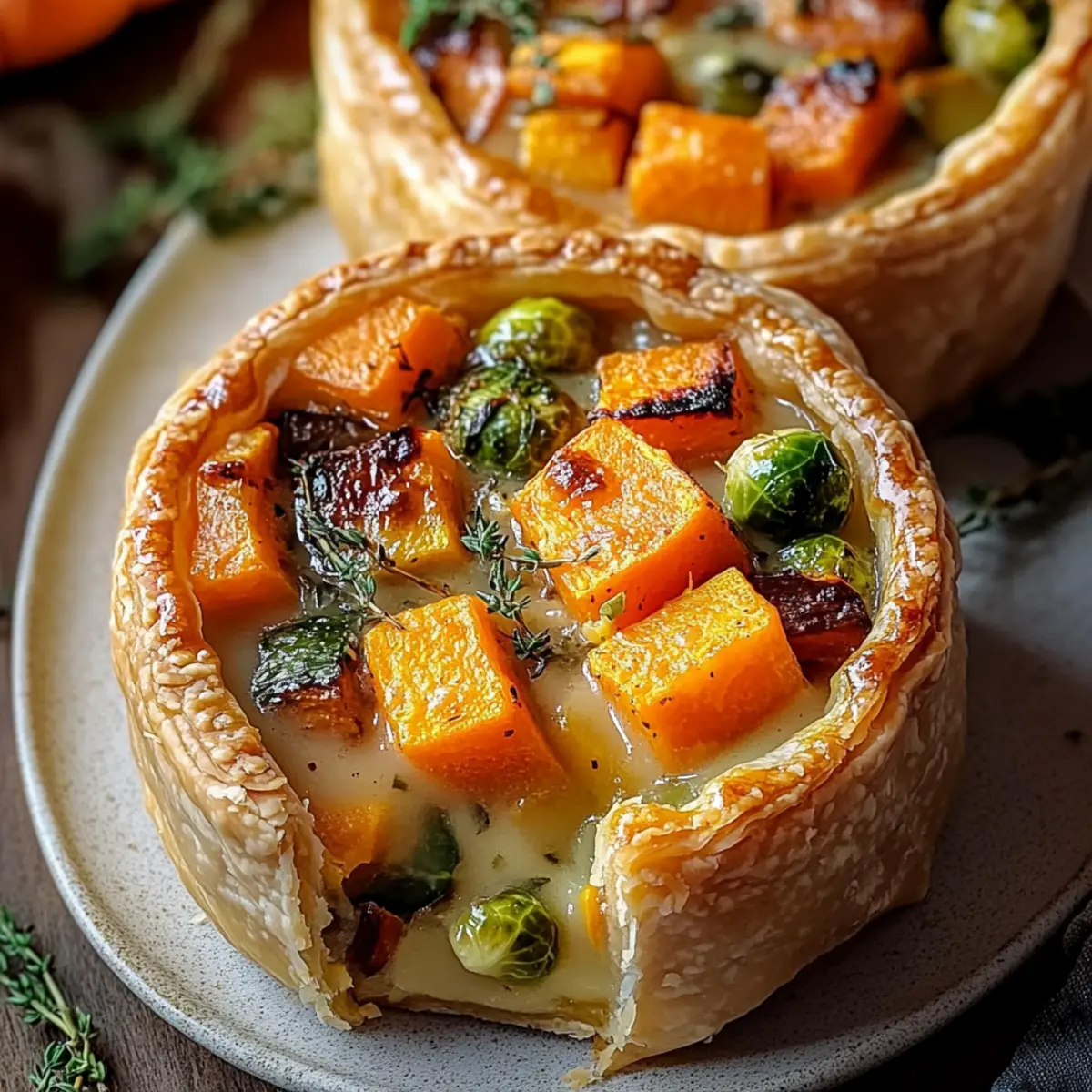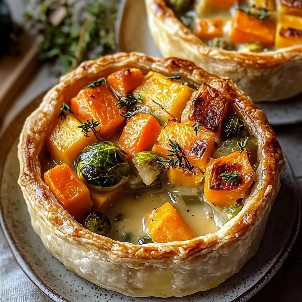 Comforting Warmth: These Roasted Autumn Vegetable Pot Pies are perfect for chilly evenings, wrapping you in cozy goodness with every bite.