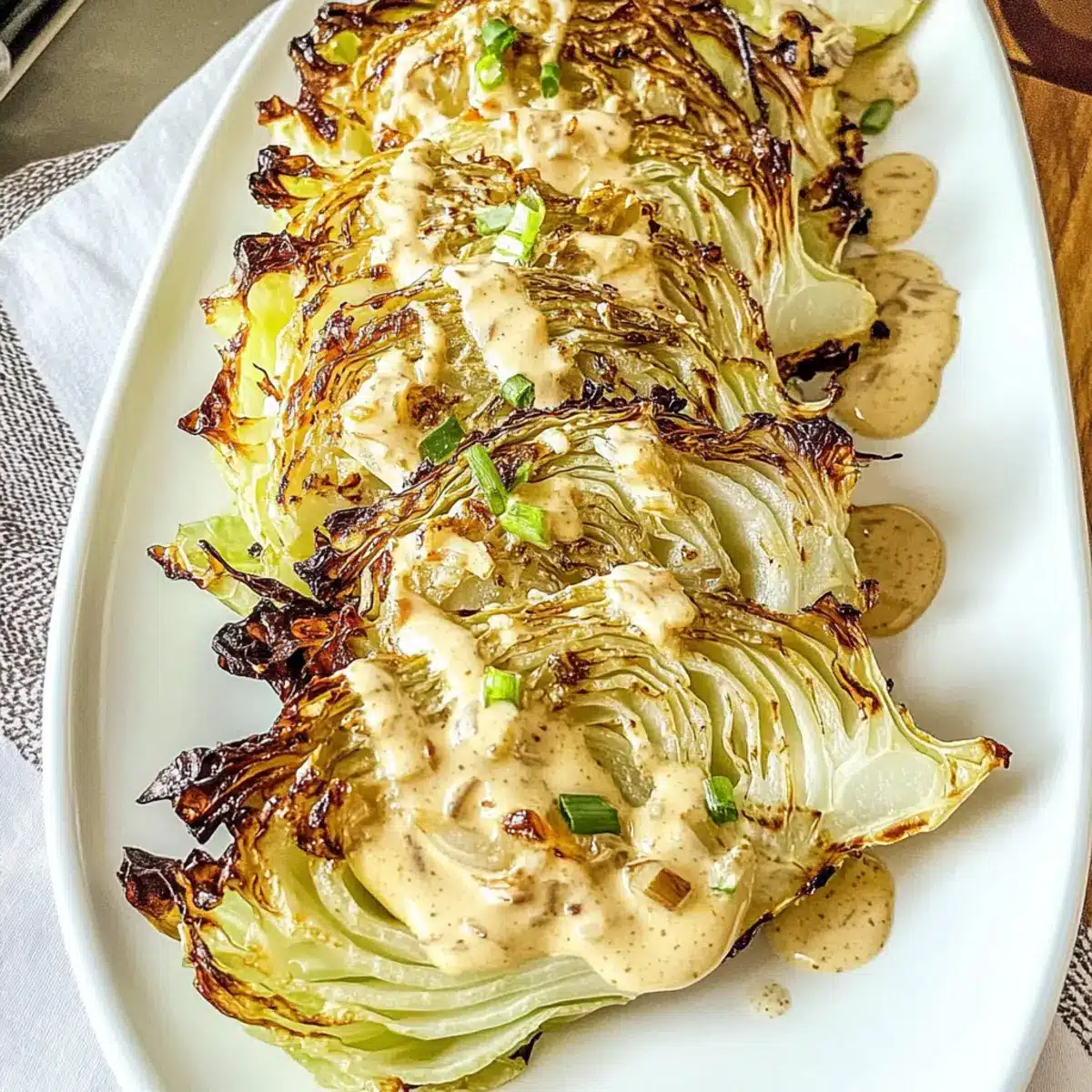 Perfectly Crispy: Keep an eye on your cabbage while roasting; those crispy edges are the highlight of roasted cabbage with amazing onion sauce!