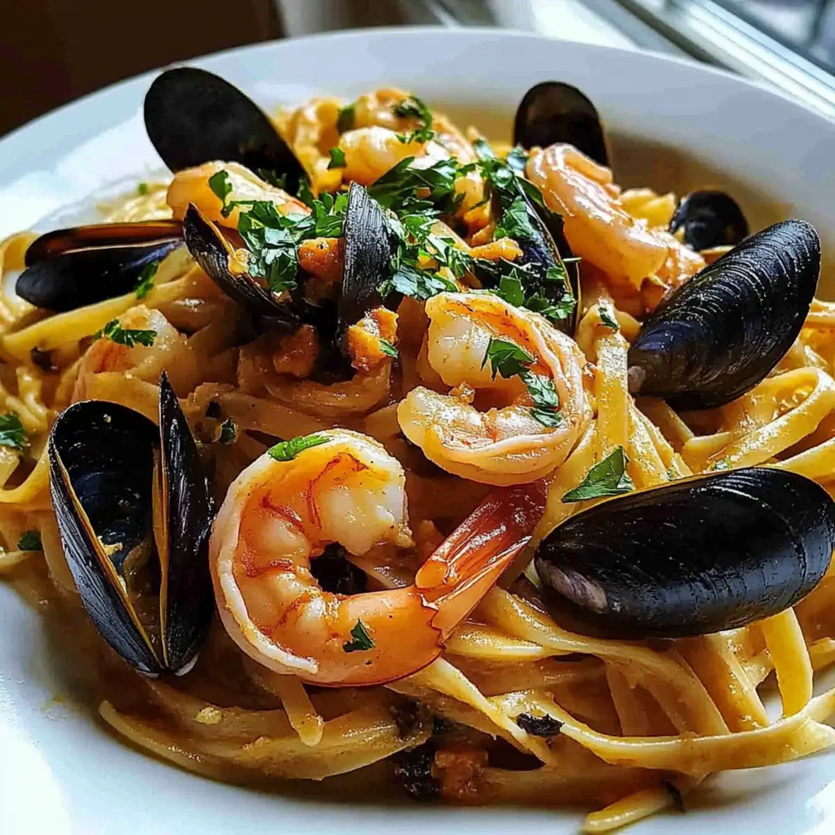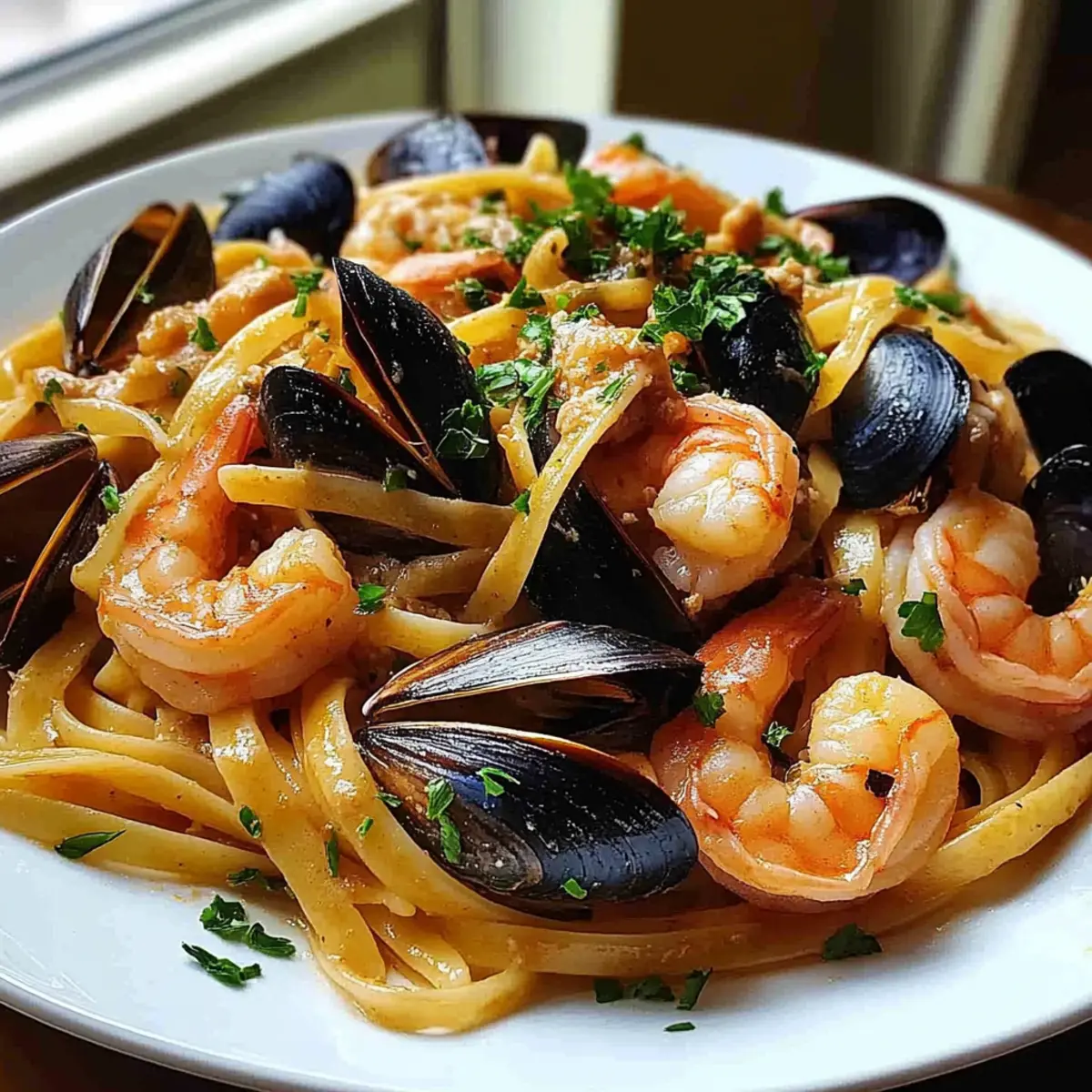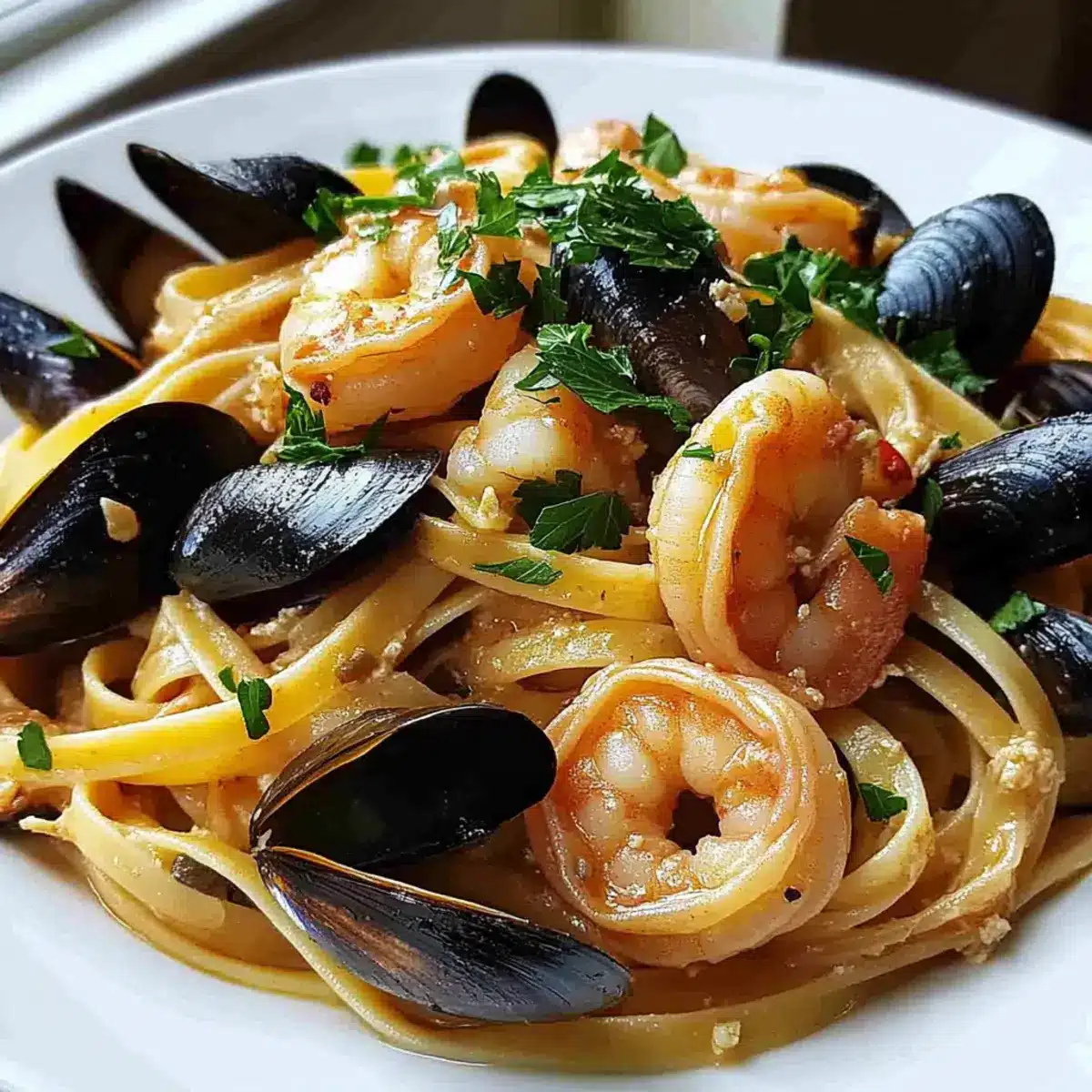 Timing Matters: To prevent overcooking, time your pasta so it finishes just as your shrimp and mussels are ready; this keeps textures perfect.