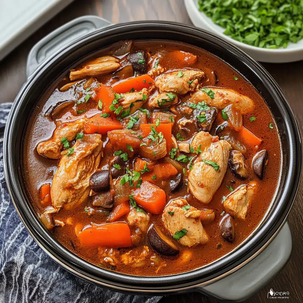 Comforting, hearty goodness: The Slow Cooker Korean Chicken Stew delivers a warm embrace to your taste buds, combining tender chicken and a delightful medley of vegetables in a rich, spicy broth. Time-saving solution: Simply toss all the ingredients in your slow cooker and let them meld together while you go about your day. Flavor explosion: Infused with unique Korean flavors from gochujang and sesame oil, it transforms the ordinary into something truly special. Versatile delight: Whether served over rice, quinoa, or noodles, this dish suits any palate and pairs beautifully with a side salad or pickled veggies. Plus, don’t miss out on experimenting with options like Mushroom Chicken Cozy or Chicken Pot Pie!