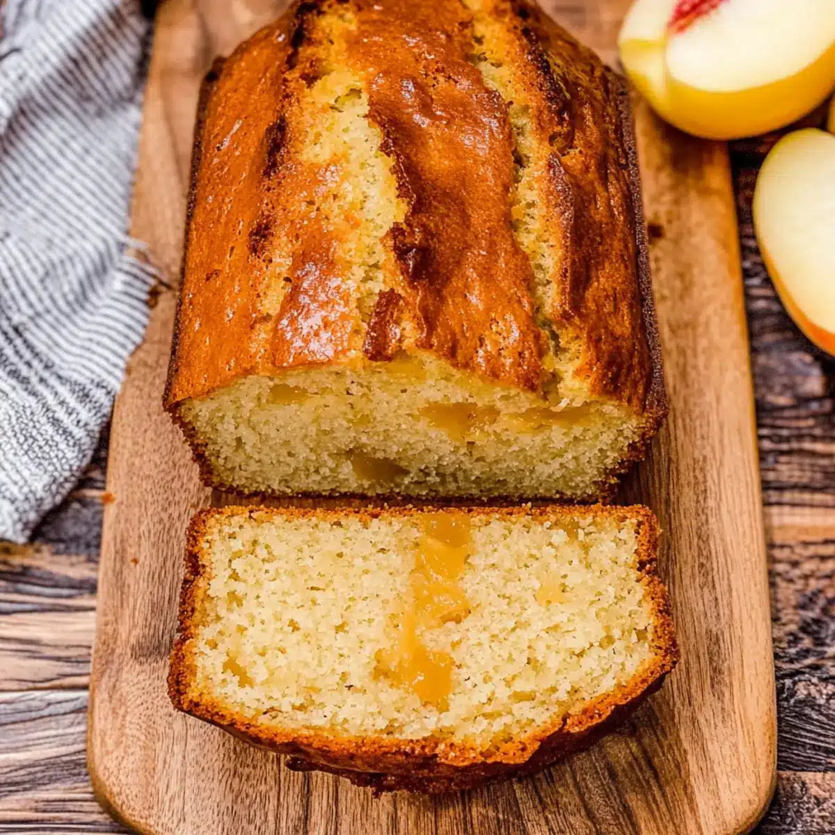 Whispers of summer echoed through the kitchen as I sliced into a loaf of Southern Peach Bread, releasing a sweet aroma that instantly transported me to sun-soaked orchards. This quick bread requires no yeast, making it an effortless fruity delight that’s perfect for those last-minute gatherings or cozy mornings at home. Packed with juicy peaches and made with simple pantry staples, this recipe not only saves time but guarantees smiles all around, leaving everyone eager for seconds. Whether you enjoy it warm with butter at breakfast or as a charming addition to your afternoon tea, this bread is a versatile crowd-pleaser. Who’s ready to bake a slice of summer magic into their day?