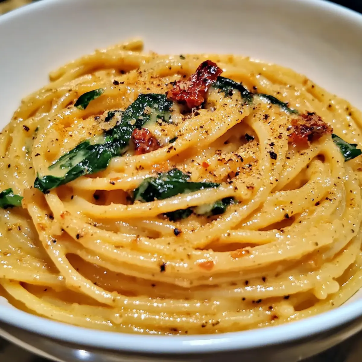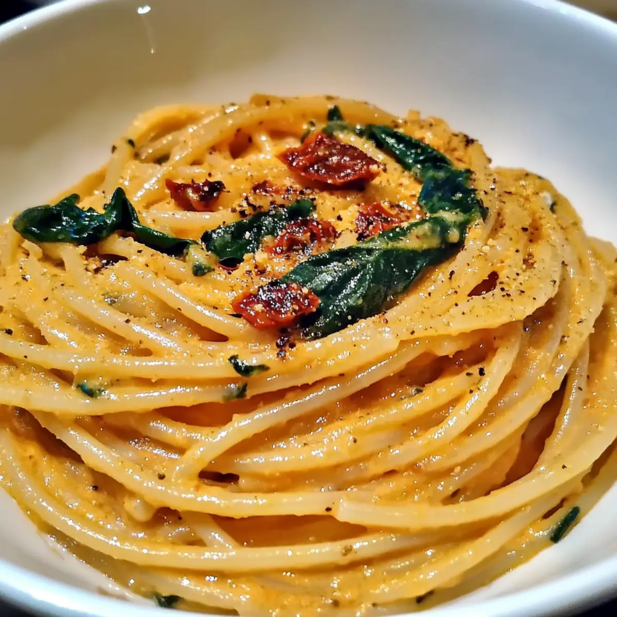 Creamy Spaghetti & Spinach with Sun-Dried Tomato Sauce Bliss