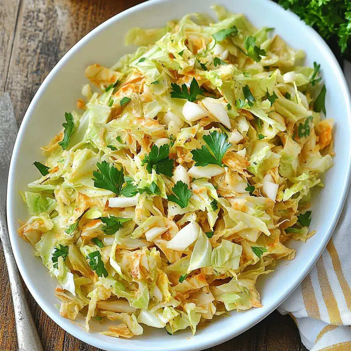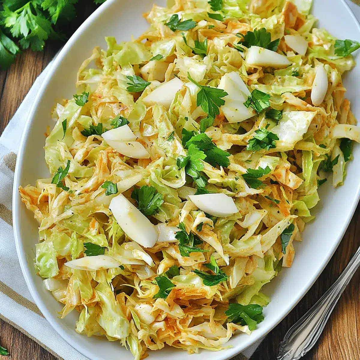These Spanish Garlic Cabbage Salad options make meal prep a breeze! You can slice the cabbage and store it in an airtight container up to 3 days in advance; just remember to salt it and let it rest to preserve its crunch. The dressing can also be prepared ahead and refrigerated for up to 24 hours—just reheat slightly before mixing it with the cabbage. When you’re ready to serve, simply combine the dressed cabbage with chopped parsley and enjoy this refreshing salad just as deliciously as when it’s freshly made. This way, busy weeknights become hassle-free while you savor the vibrant flavors of your Spanish Garlic Cabbage Salad!