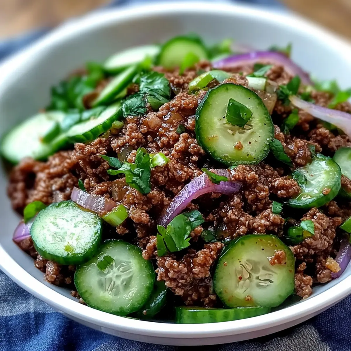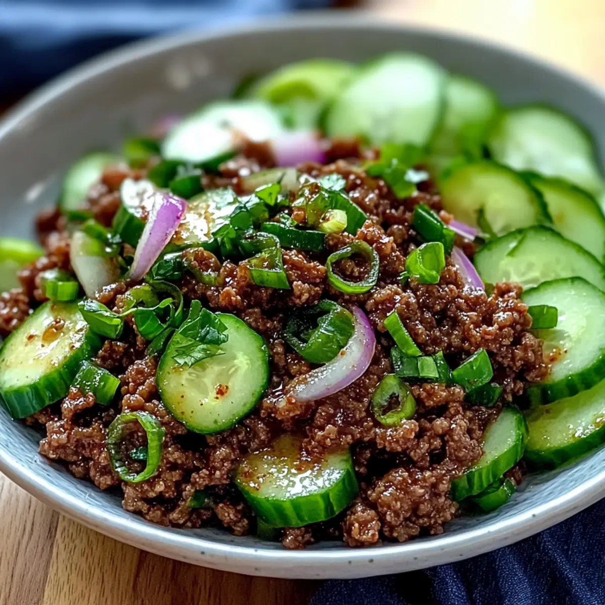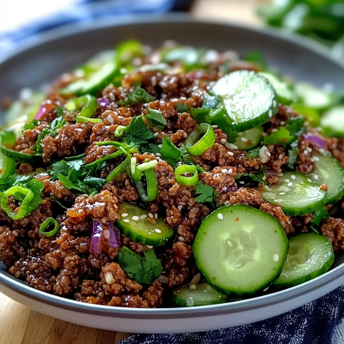 Spicy Korean Ground Beef with Cucumber Salad for a Quick Fix