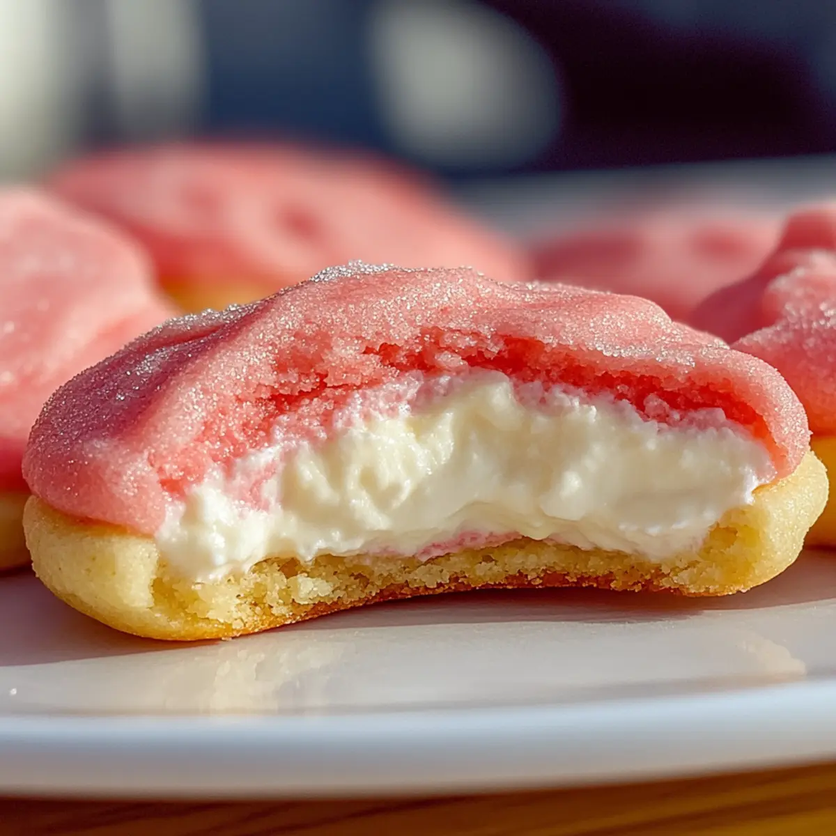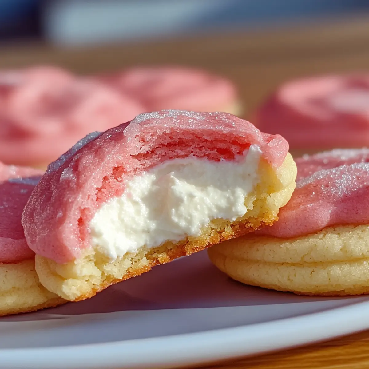 Preheat your oven to 350°F (175°C). Arrange the sugar-coated dough balls on a lined baking sheet, leaving space between them. Bake for 10-12 minutes, until the edges of the cookies are set but the centers remain soft. Remove them and allow the cookies to cool on the baking sheet until the filling firms up, creating that perfect creamy center that defines these Strawberry Cheesecake Cookies.