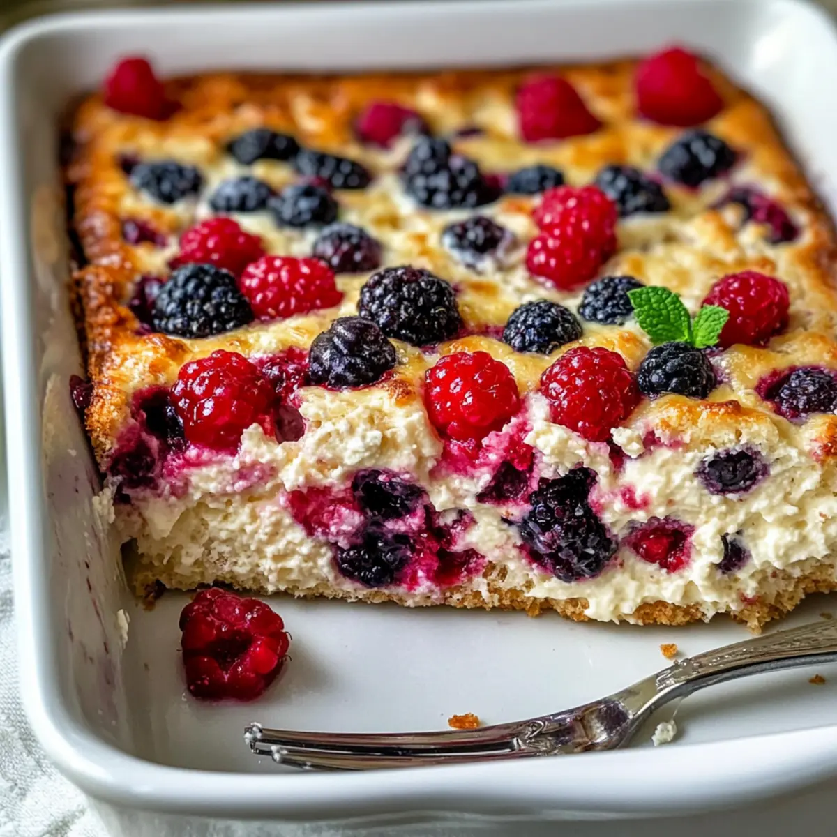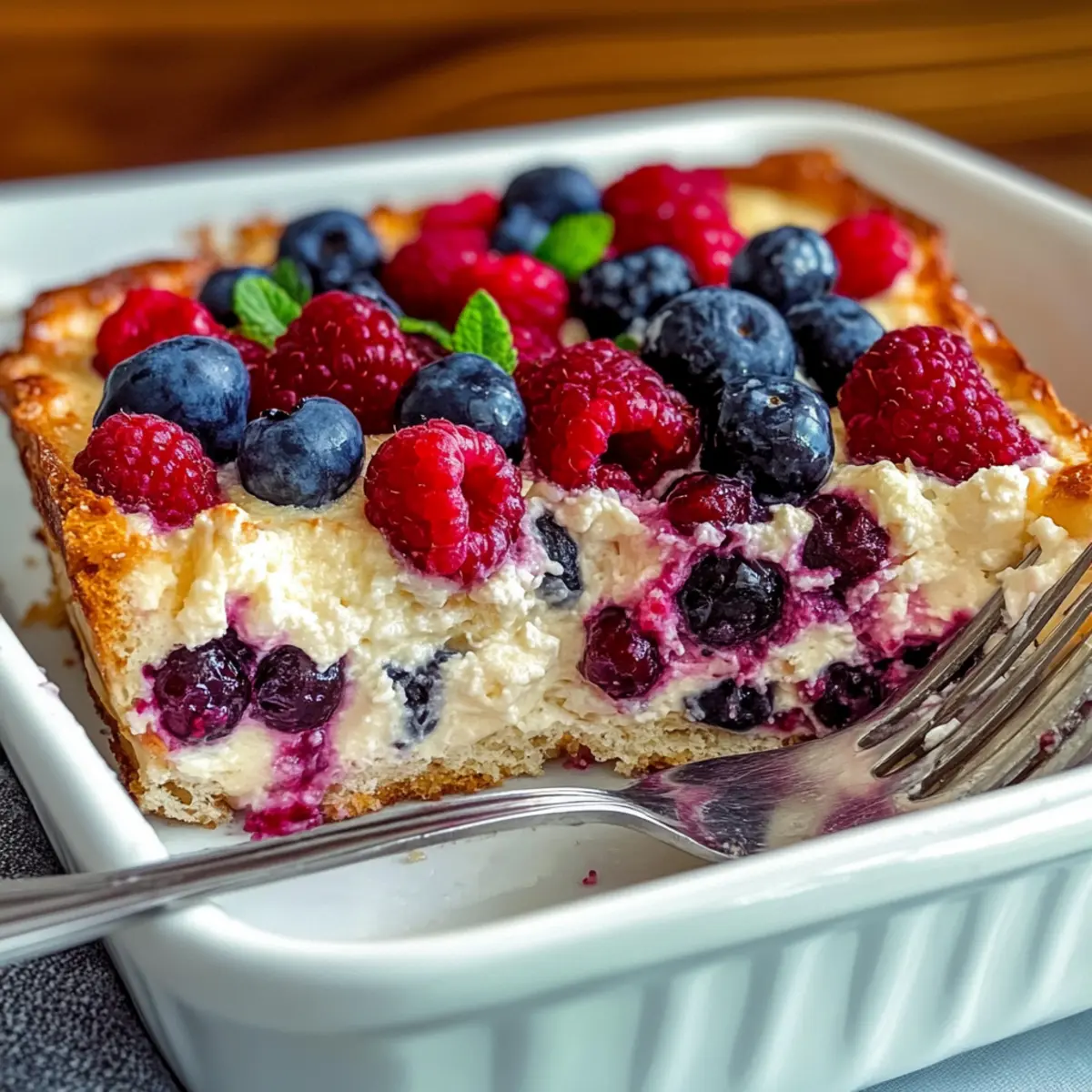 Nourishing, each slice of this bake delivers a hefty punch of protein, keeping you energized throughout your morning. Versatile, feel free to swap the berries for your favorite fruits or adjust the sweetness to match your taste. Simplicity, this recipe calls for minimal pantry ingredients, making prep a breeze. Make-Ahead Convenience allows you to whip it up over the weekend for healthy breakfasts all week, reminiscent of other crowd-pleasers like the amazing Dumpling Bake New or the delightful Bake Snowman Truffles. Texture & Taste, the creamy base paired with juicy berries creates a luscious mouthfeel, making it a surefire hit, even for picky eaters!