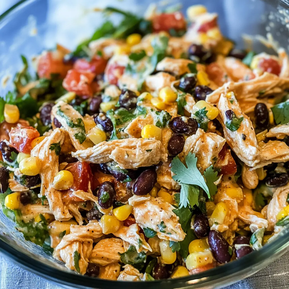 As I tossed together my lunch today, I stumbled upon a delightful flavor adventure that begged to be shared: the Zesty Southwest Chicken Salad. With tender, shredded chicken mingling cheekily with sweet corn and creamy black beans, this dish offers a refreshing escape from mundane meals. What sets it apart? A homemade taco-seasoned mayonnaise that jazzes up every bite, making it a perfect quick fix for busy weekdays. It’s not just wholesome—packed with protein and gluten-free options, it’s also the kind of salad that turns lunch into a celebration of flavors, loved by both adults and little ones alike. Are you ready to transform your salad game? Let’s dive into this mouthwatering recipe!